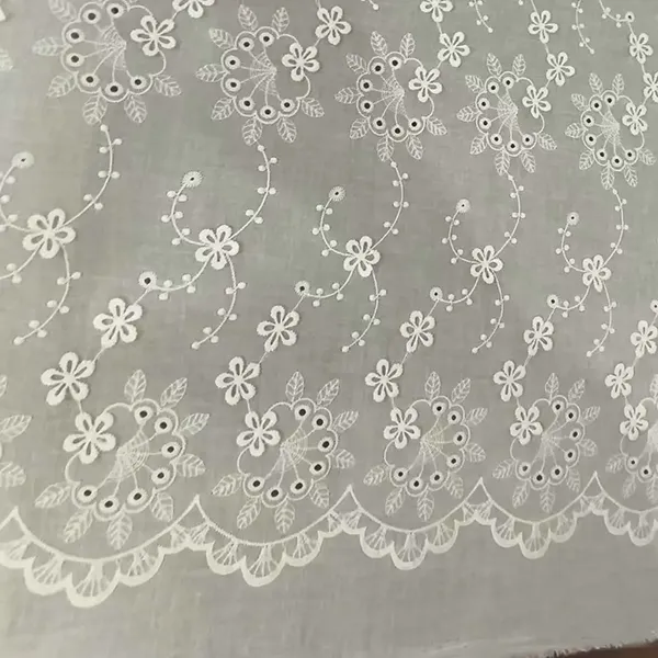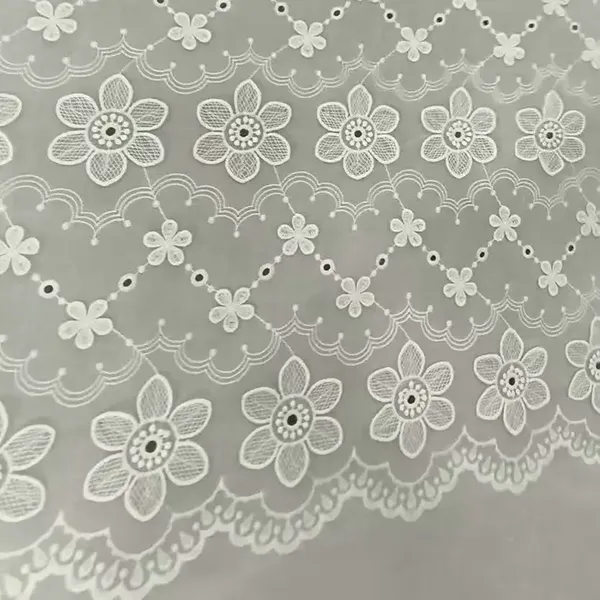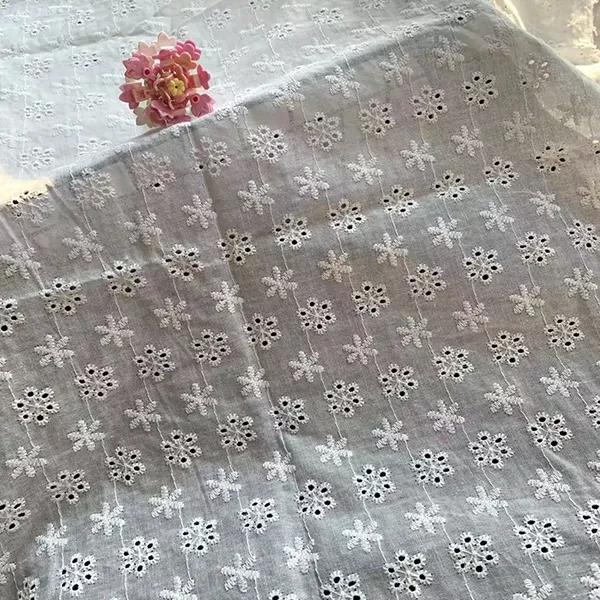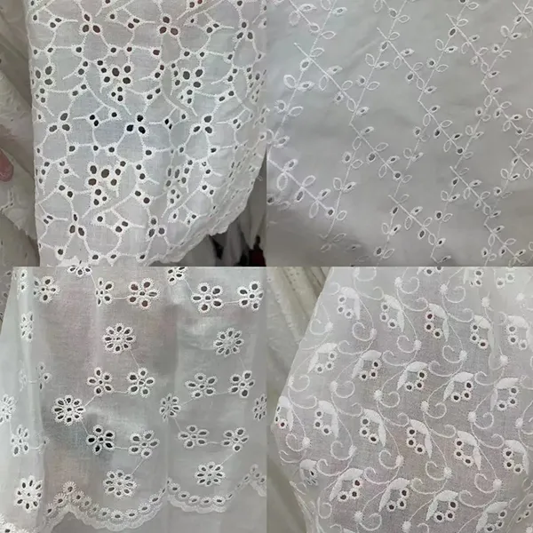 Broderet bomulds blonder eyelet stof denne lette, åndbare bomulds blonder stof har delikat øjenbroderi, der tilbyder et charmerende, struktureret design perfekt til forår og sommer mode. Ideel til kjoler, bluser, gardiner og håndværk kombinerer det vintage elegance med naturlig komfort. ** Openwork eyelet mønstre ** Forbedre luftstrømmen, mens holdbarheden opretholdes. Blød, alsidig og let at sy, dette stof er et tidløst valg for både tøj og boligindretning. Fås i flere farver og bredder, det er perfekt til romantiske, boho eller klassiske stilarter.