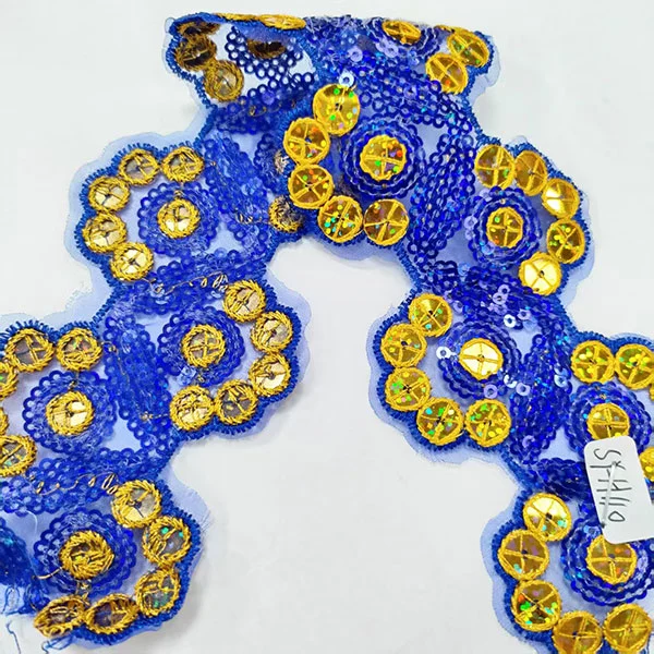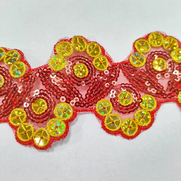 Broderiet tilføjer detaljerede mønstre eller design til trim, mens multicolor-paljetterne giver et blændende og iøjnefaldende element. Mesh -basen giver trimning af en let og luftig kvalitet, hvilket gør den perfekt til at tilføje komplicerede detaljer uden at tilføje bulk.