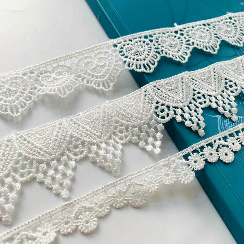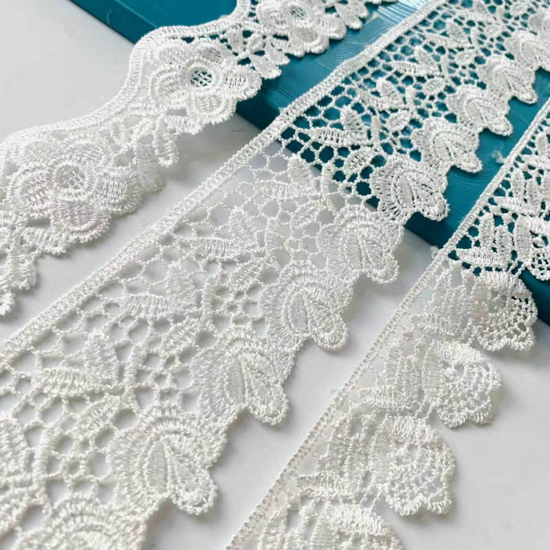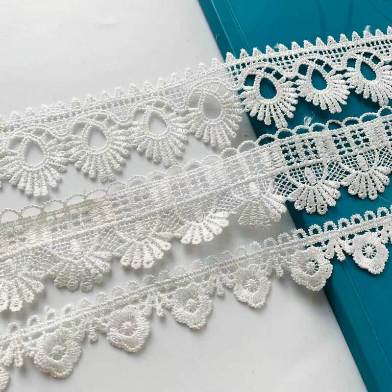 Blomsterblonder trim 100% polyester kemisk blonder Den udsøgte blomstermønster Kemisk udhulet teknik gør tekstur lys, blød og åndbar. Det er velegnet til dekoration i tøj, hjemmetekstiler, brudekjoler osv., Der tilbyder en række farver og bredder at vælge imellem. Det er vaskbart og holdbart og understøtter tilpasset design.
