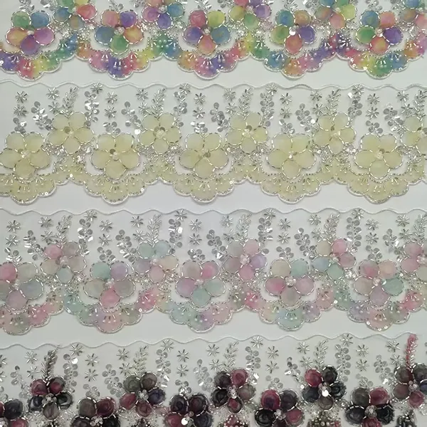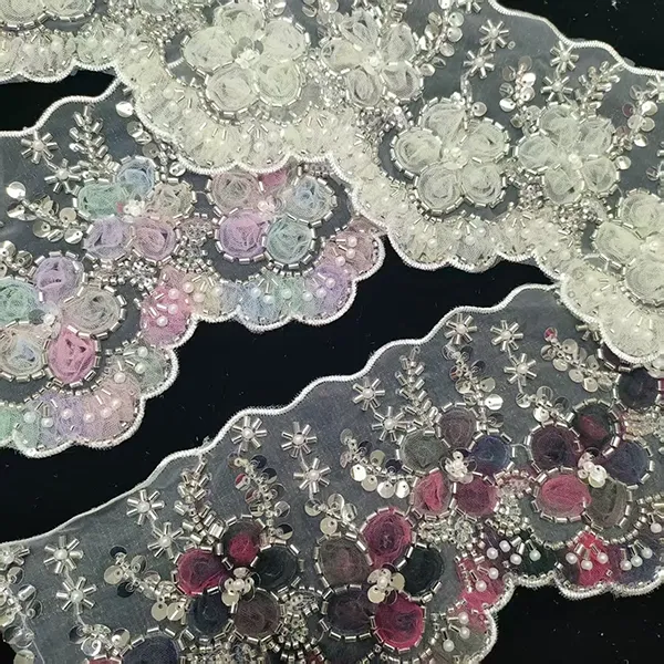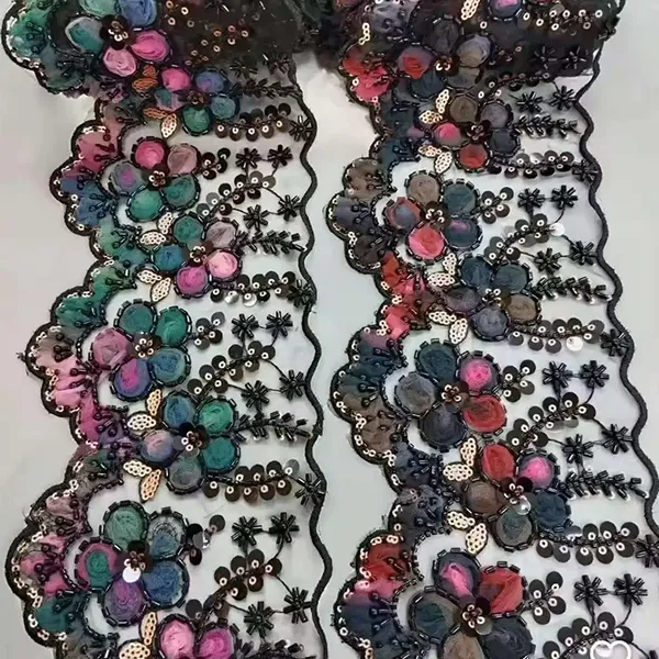 | Råvare | Flerfarvet broderet blonde med 3D mesh blomsterbånd Perlerør stregkode broderi blonder | ||