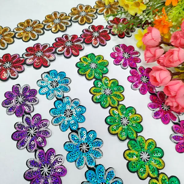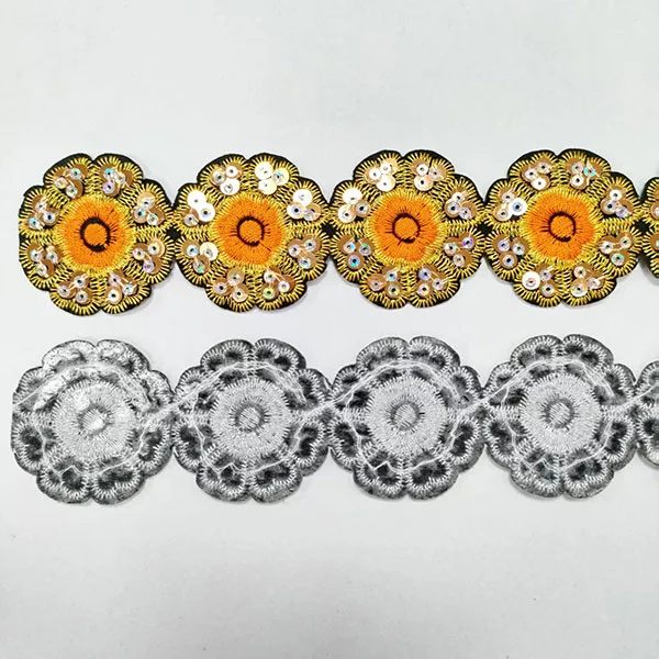 Paljetter tøjtilbehør Blonder trimning med ryglim, især blonderbeklædning med klæbende bagside, repræsenterer en populær og alsidig måde at tilføje gnist og glamour til en lang række projekter. Dette inkluderer dekorative blonder, dekoreret med små, skinnende diske kendt som paljetter.