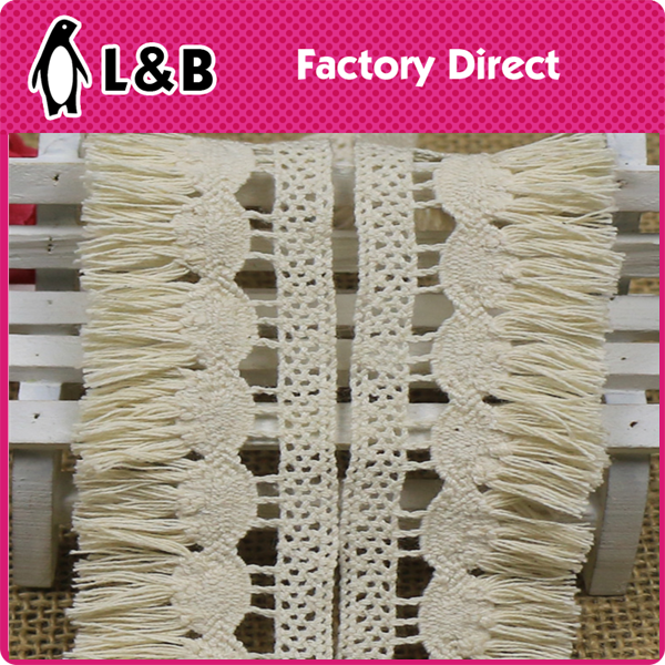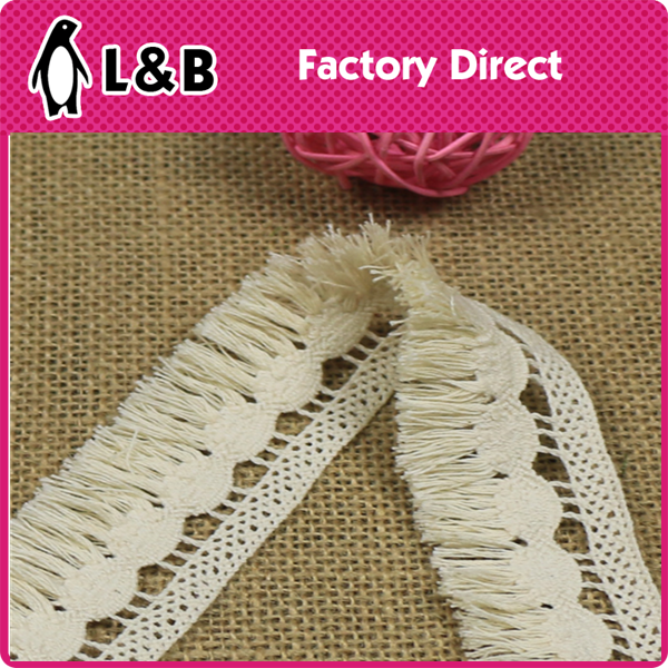 Engros 3,5 cm stilarter 100% bomuldspolsk hæklet bomulds frynse blonder trim, bomuldsøjlet blonder trim lavet af 100% bomuld af høj kvalitet, det tilbyder to stilarter: polske hæklet kvast blonder og bomuldsmaskiner med udsendte og tre-dimensionelle mønstre. Det er velegnet til tøjhems, manchetter, boligindretning osv. Det er blødt, åndbart og naturligt hudvenligt. Understøtter brugerdefineret farve og længde, tilbyder ydelse med høj omkostning og er velegnet til bulkkøb.